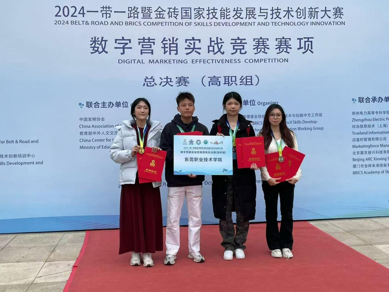 由金砖国家工商理事会中方理事会、“一带一路”暨金砖国家技能发展国际联盟、中国科协“一带一路”暨金砖国家技能发展与技术创新培训中心主办,中国发明协会、教育部中外人文交流中心联合主办的2024“一带一路”暨金砖国家技能发展与技术创新大赛之数字营销实战竞赛赛项国内总决赛于2024年10月18日-10月21日在河南郑州举行。由我校经管学院黄嘉敏、何瀚玮等老师指导的22级工商企业管理专业黄冰蓉、林树伟同学获得全国一等奖,张琳妍、苏嘉妮同学获得全国二等奖。