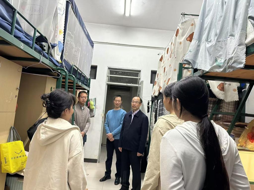 贺定修校长在学生寝室与同学们进行了亲切交流,详细了解同学们的学习、生活情况和对未来的规划与期望,并鼓励同学们以积极乐观的态度迎接即将到来的毕业季和就业季。他还特别强调了宿舍安全,希望同学们保持良好的卫生习惯,建设良好的宿舍文化,共同营造一个整洁、舒适、安全的住宿环境。