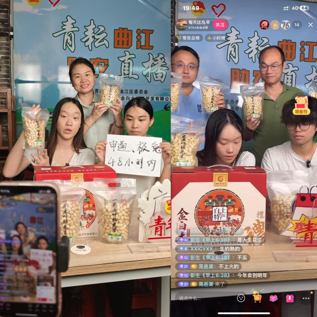 金白土经济开发有限公司作为乡镇集体经济的一部分,也面临的销售渠道单一的困境,特派员团队联合东莞驻白土镇帮镇扶村工作队量身定制了 “数字营销赋能方案”。7月7日起,我校“粤乡优选”突击队首先开启了“直播助农周”活动,在抖音平台通过直播带动当地花生、粉葛面等特色农产品走出韶关,进入更广阔的市场,为当地农民带来更直接的收入增长。