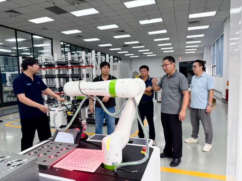 随后,校企双方在学院会议室召开FANUC产业学院运行研讨会,产业学院负责人依次从目前建设情况、存在困难、工作计划等方面进行了汇报和交流。同时,双方细化了后期工作的具体安排,进一步明确了目标,指明了未来建设方向。