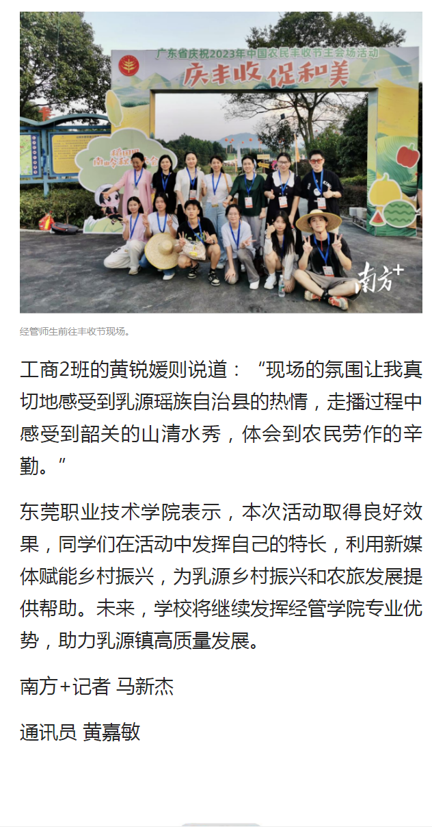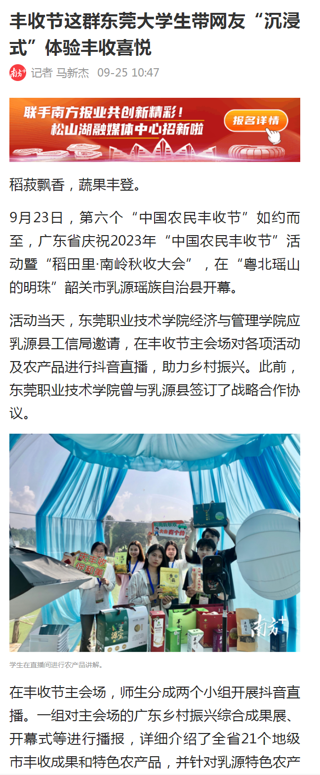 【南方日报】丰收节这群东莞大学生带网友“沉浸式”体验丰收喜悦